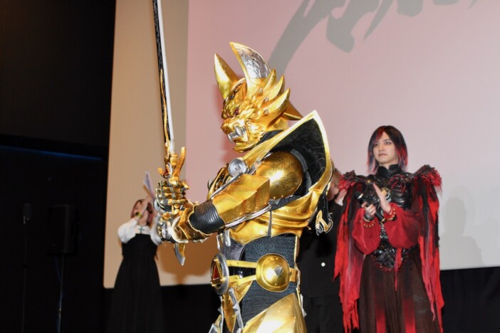イベントの最後には、黄金騎士ガロがステージに登場。フォトセッションでは、キャスト陣と共に威風堂々としたポーズを披露した。20年の歴史を継承し、新たな一歩を刻む本作。キャストと制作陣の熱い想いが詰まった舞台挨拶は、大盛況のうちに幕を閉じた。