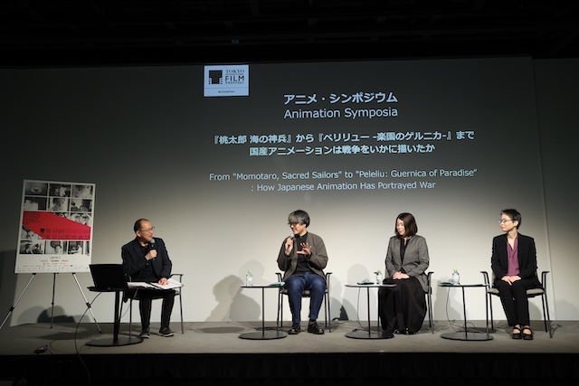 『ペリリュー ー楽園のゲルニカー』の原作者であり共同脚本を務めた武田と『戦争と日本アニメ『桃太郎海の神兵』とは何だったのか』の編著を務めた堀ひかり(東洋大学 文学部国際文化コミュニケーション学科 准教授)、佐野明子(同志社大学文化情報学部准教授)が登壇。国産アニメーションと戦争の関係についての議論が交わされる中で武田一義が本作に込めた想いを語った。