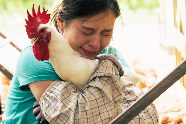 あわせて公開されたポスターは、遠方にパリのエッフェル塔、そして手前にはフイジュンが営む台湾のファームの風景を組み合わせた、まるでゴッホの油彩を思わせる印象的な背景に、笑顔のフイジュン/サリーがマッチングアプリのプロフィール画面に収まってチャットでやりとりをするビジュアルに。弟ウェイホンや幼なじみのハオ(リー・インホン/DJDidilong)、姪シンルー、そして愛犬「サツマイモ」やニワトリ、ヒヨコなどの愛らしい動物の姿などがコラージュされ、フイジュンを取り巻く温かい家族の存在を伺わせる。
