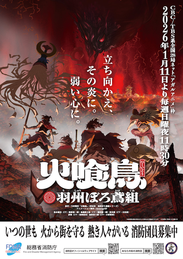 TVアニメ『火喰鳥 羽州ぼろ鳶組』の放送開始日が2026年1月11日に決定し、あわせて新キャストとして三吉彩花と諏訪部順一の出演が発表された。
