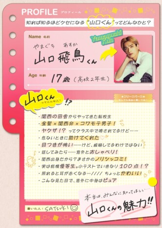 さらに、山口くんの魅力や中身をこっそり紹介するプロフィールビジュアルも公開された。