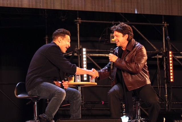 2人揃ってステージに登場すると、バーンサルは「私たちを迎えてくださってありがとうございます。今回本当にとてもクールな体験をしています。みなさんの笑顔や愛が本当にリアルなものなんだなと感じています。とても心が動かされています。ありがとうございます」とコメント。スタンも「僕たちに会えるということを、みなさん非常にエキサイティングに感じてくれていることが伝わってきます。僕は裏で寿司ばっかり食べていますが、今日ここに来ることができて、そしてみなさんに会えることができて本当に嬉しいです。ありがとうございます」と感謝の気持ちを述べた。
