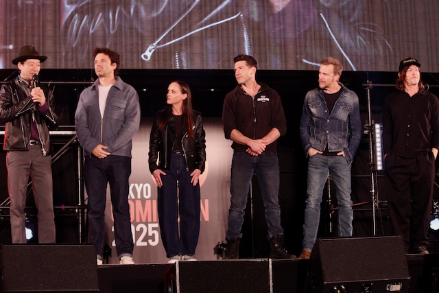MCの中丸雄一とLiLiCoの呼びかけで登場したのは、PR大使の伊織もえとアンバサダーの山本耕史。その後、DCコミックスの社長ジム・リー、マーベル・コミックス編集長のC・B・セブルスキー、『スター・ウォーズ エピソード2/クローンの攻撃』のダニエル・ローガン、『スーパーマン』のニコラス・ホルト、『ハリー・ポッター』シリーズのイヴァナ・リンチ、『ザ・ボーイズ』のジャック・クエイド、『ロード・オブ・ザ・リング』シリーズのイライジャ・ウッド、『SHOGUN 将軍』の浅野忠信、『サンダーボルツ*』のセバスチャン・スタン、『アダムス・ファミリー』シリーズのクリスティーナ・リッチ、『パニッシャー』のジョン・バーンサル、『処刑人』シリーズのショーン・パトリック・フラナリーとノーマン・リーダス、『ゲーム・オブ・スローンズ』のピルウ・アスベック、『ドクター・ストレンジ』のマッツ・ミケルセン、そして『バック・トゥ・ザ・フューチャー』のトム・ウィルソン、クローディア・ウェルズ、リー・トンプソン、クリストファー・ロイドと、計19名の来日セレブが続々とステージに上がった。