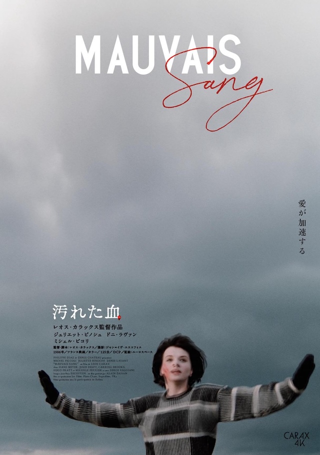 公開された『汚れた血』のポスタービジュアルは、鈍色の雲で覆われた空の下、アンナが飛行機のように手を広げ疾走する名シーン。ポスターには“血”の赤が印象的にあしらわれ、一途なアレックスを想いながら重力に逆らい滑走路を飛び立とうと走るアンナの姿が写し出されている。