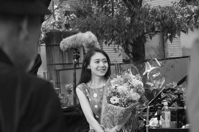 ヒロイン・紀子役の咲耶は、高くブランコを立ち漕ぎするシーンで撮影を終了。オーディションを勝ち抜き、プレッシャーの中で撮影に臨んだ彼女の達成感に満ちた表情が切り取られている。