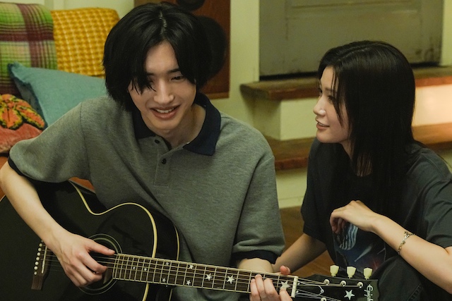 公開された場面写真では、春人と綾音の10年の愛の軌跡が切り取られている。海辺に広がる芝生の上で2人きりで歌を作り上げるまぶしい青春の日々、放課後の部室で後光に照らされながらギターを奏でる綾音の姿、そして、大人になった春人が綾音からギターを教わる温かく尊い時間……。しかし一転、目には涙を浮かべ、切ない別れを感じさせる、悲しみを隠し互いの幸せを想う2人の姿も。歌を通してつながっていく2人の “10年”という月日が感じられる場面写真となっている。