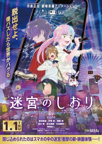 本作は、スマートフォンという現代人にとってあまりに身近な存在を入口にした異世界脱出劇。SFや巨大ロボット、ファンタジーといったジャンルを長年手がけてきた河森正治監督ならではのカラーもしっかりと息づいており、日常の延長線上にありながら、どこか歪で不穏な世界観が広がっていく。主人公・前澤栞を演じるのは、新しい学校のリーダーズのSUZUKA。そこに原田泰造、伊東蒼、齋藤潤といった実力派が加わり、独特のトーンを作品全体に与えている。