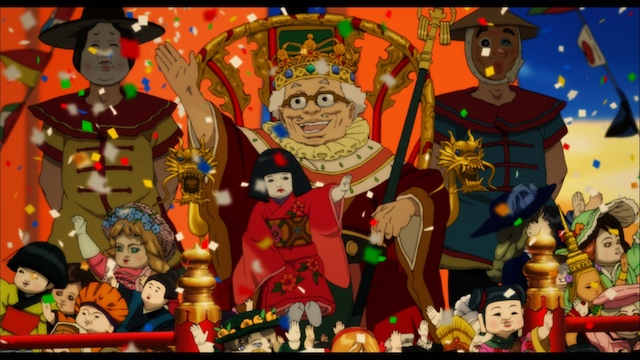 さらに、権力者のポストをめぐりスーツ姿の老人たちが醜い争いをしていたり、制服を着た女子高生のスカートを撮影しようとする携帯電話のイメージが差し挟まれるように、経済中心主義の奔流のなかで人々が狂態を繰り広げていくさまが展開していくのだ。ここでなぜ、日本社会の風刺が現れるのかといえば、一つにはフロイト風に、夢のなかでは欲望の姿がまざまざと表れるという考え方があるからだろう。