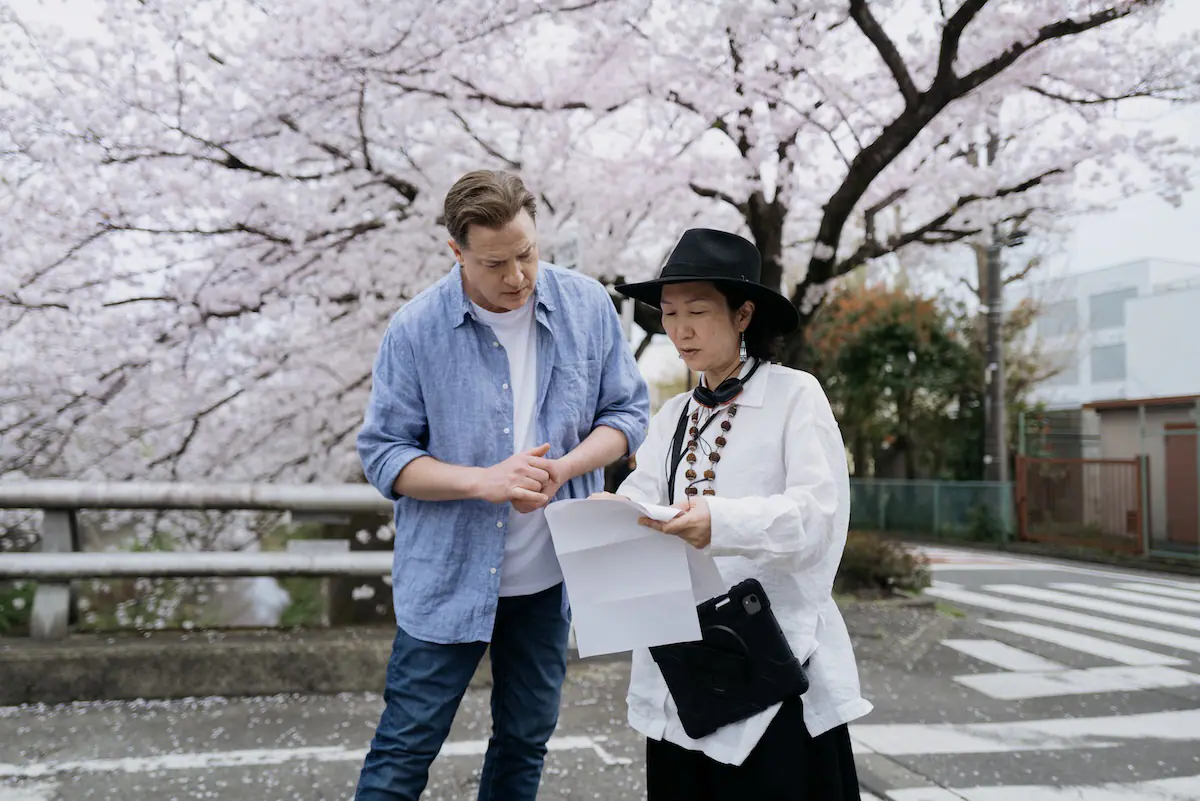 公開されたメイキング写真では、フレイザーが満開の桜をバックにHIKARI監督と真剣な様子で打ち合わせを行っている様子や、神社の境内のような場所で撮影に臨んでいる姿が切り取られている。オスカー俳優のフレイザーは日本で長期にわたる撮影に挑んでおり、自らポケット翻訳機を手に街を歩き回り、日本の町並みに溶け込むための役作りを徹底的に行ったという。