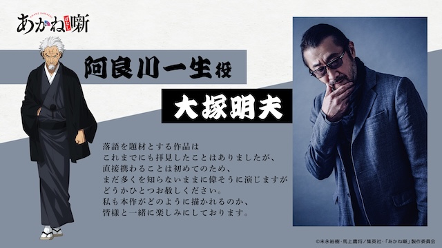 4月より放送されるTVアニメ『あかね噺』に、てらそままさきと大塚明夫が出演することが発表された。
