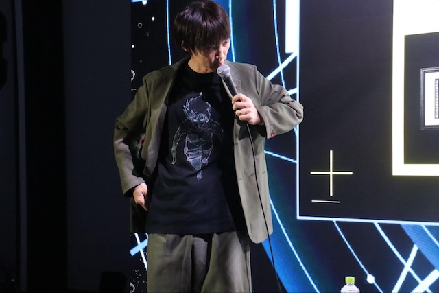 「電脳VISION」 統括プロデューサー・砂原哲はARグラスの解説をしつつ、「『攻殻機動隊』のUIは多くの開発者のイメージソースになっています。その作品の世界を本物のデバイスで体験できるのは非常に感慨深いことだと思います」と、『攻殻機動隊』の現実世界への影響を明かした。