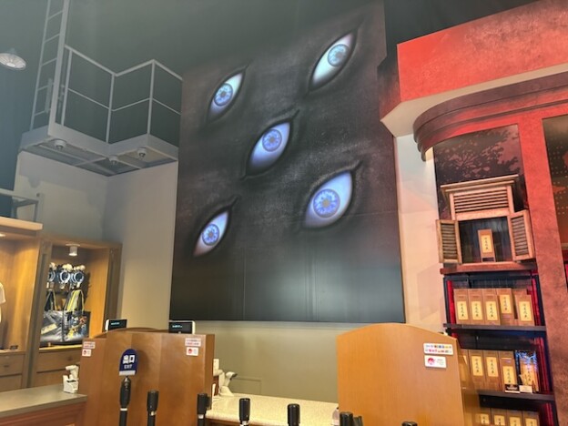 最後に、ファンとして必ずチェックしておきたいのが限定コラボグッズ。店舗は「ザ・リアル 4-D」のシアターに隣接していて、同じく「クールジャパン2026」に参加する『名探偵コナン』のグッズ売り場にも繋がっている。店内に入ると天井から帷が降りてきていて、お店の中でも『呪術廻戦』の世界観が堪能できるのが嬉しい。