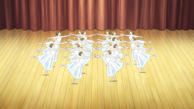 しかしモーションキャプチャの映像だけではバレエが持つ身体表現を具現化することは難しい。そこで、自身もバレエ経験者であるアニメーター・作画監督のやぐちひろこにバレエ作画監督として白羽の矢が立った。谷口監督からも絶大な信頼を寄せられる彼女は、経験者ならではの視点を作画に盛り込んでいった。「多くのバレエシーンについては、実際に専門家の踊りをモーションキャプチャし、それを3DCGに反映した参考の動画がありました。これをもとに原画さんに、まず大まかにラフを描いてもらい、そこでバレエの押さえておきたいポイントなどをチェックして、その上でレイアウトとラフ原画に入ってもらうようにしました。レイアウトの前段階でチェックがあることで、普通の工程よりもチェックが1回多くなっています。ラフだけでも大変な作業なので最初の段階で方向性を固めようということでこのやり方になりました」と振り返る。