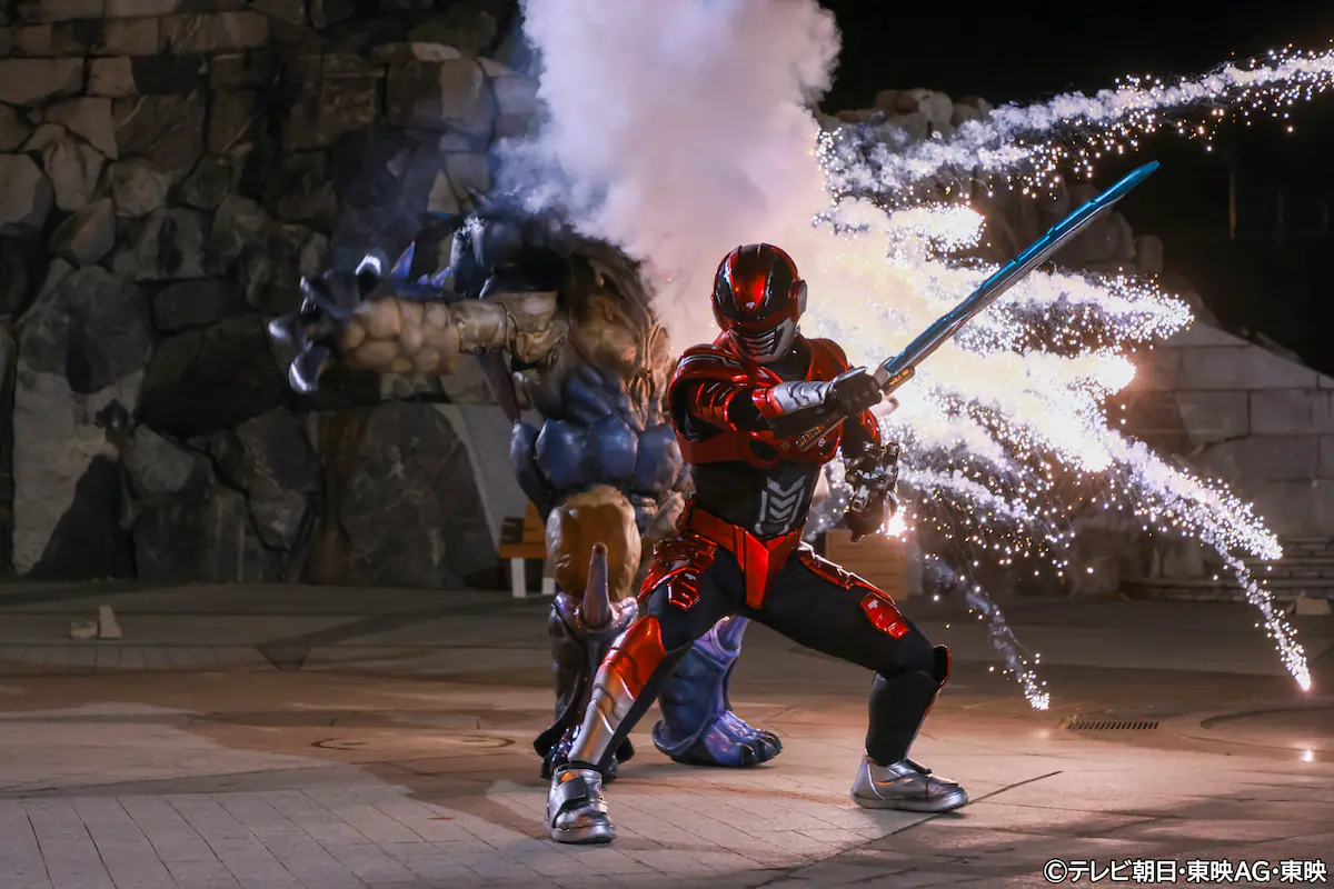 合成技術の向上は爆発シーンにも感じられる。1980年代は火薬を使えるロケ場所が限られていたこともあって、メタルヒーローシリーズも戦隊シリーズも、爆破がある山場の戦いは常に同じ採石場が撮影に使われた。現在は実際の火薬を用いずとも、映像の中に合成の爆発を描くことが出来るので、『ギャバンインフィニティ』第1話序盤で大爆発の中を怜慈が駆け抜けるようなアクションも可能になった。