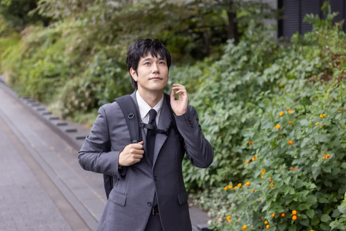 第1話の冒頭で、安堂が歩道のタイルに沿ってまっすぐ歩いていくところは特に印象深い場面の一つです。あえて安堂の表情を見せずに彼が抱えている悲しさを表現したかったんですけど、すごく難しいなとも思っていて。撮影初日で松山さんも探り探り演じている部分があったと思いますが、リュックを背負ったその背中がものすごく悲しそうに見えて手応えを感じることができました。安堂というキャラクターを理解するうえでも重要な意味を持つシーンです。