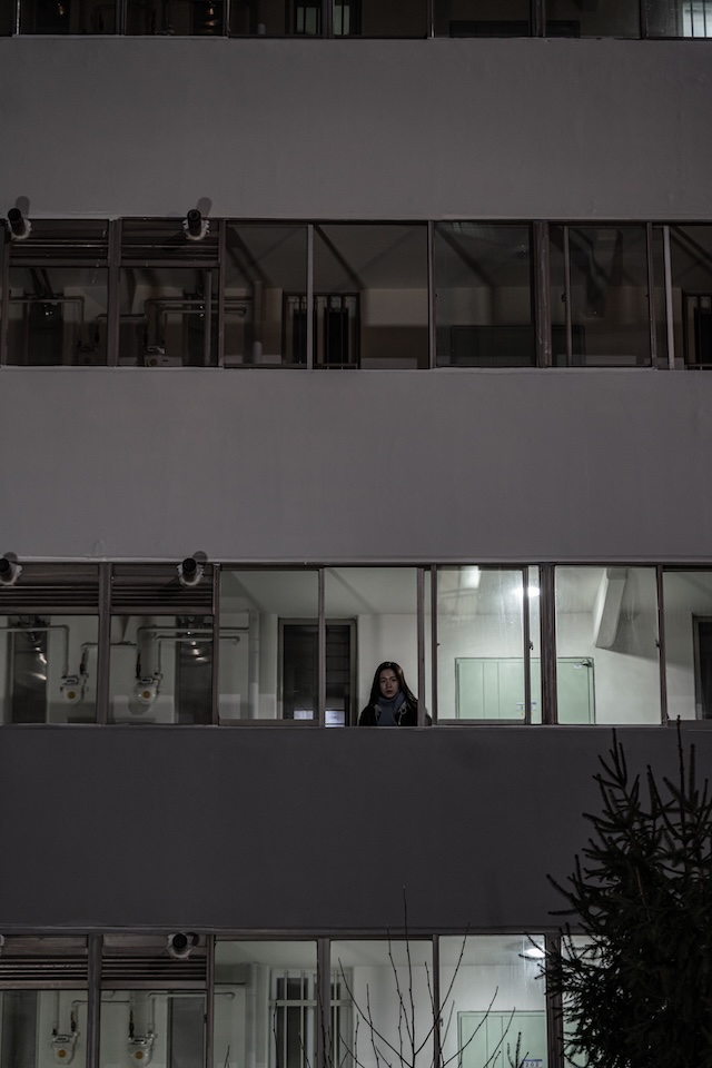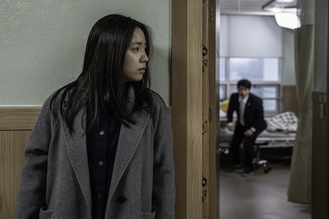 あわせて日本版ビジュアルと予告編も公開。日本版ビジュアルには、物語の舞台となるアパートの外観が写し出されており、一見すると中央に主人公・ウンスだけが写っているように見えるが、注意深く見ると右上に怪しげな上階の住人・ホギョンの姿が確認できる。