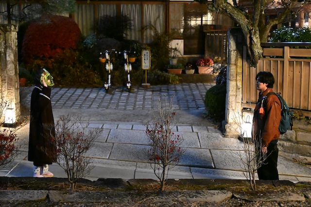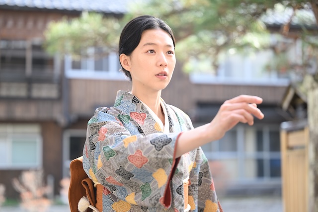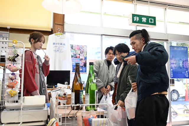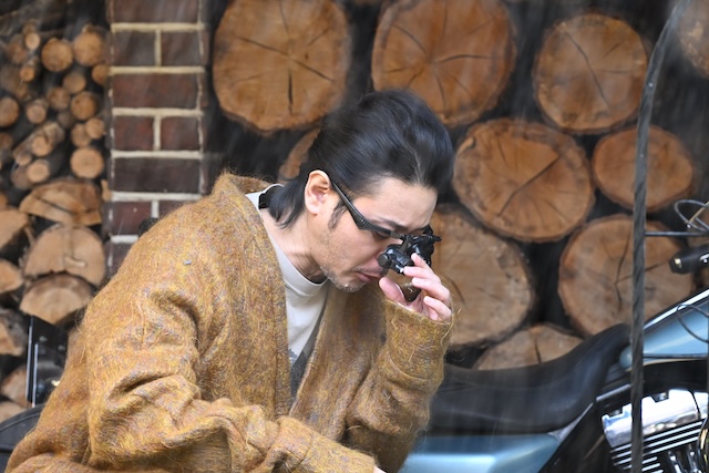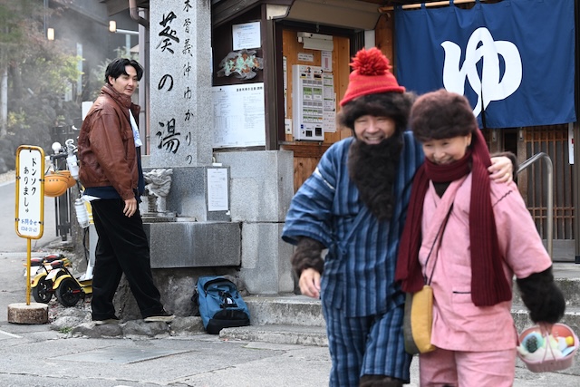 オダギリが演じたのは、小洒落たカフェのマスター。松田演じる洋輔は、南香澄(片山友希)たち同居人たちの熱い要望で実家の温泉宿「ゆらぎや」を再開することを決め、その準備のために奔走していた中、帰り道でジェットパックに不具合が生じてしまった上に雨も降ってきたため、偶然見つけたカフェで雨宿りすることに。他に客がいない2人きりの空間で洋輔は間を埋めるようにマスターに話しかけるが、その返答が本作の中でもトップレベルのゆるさ全開&ツッコミどころ満載で、極めつきはだいぶおかしなマスターの姿。その装いは衣装合わせ中にオダギリ自らが提案したこだわりのスタイルだった。映画『舟を編む』(2013年)での共演や、ドラマ『オリバーな犬、(Gosh!!)このヤロウ』シーズン2(2022年/NHK総合)では脚本・演出・編集を手がけるオダギリの働きかけで松田がサプライズ登場するという間柄によって、今回のシーンが実現した。