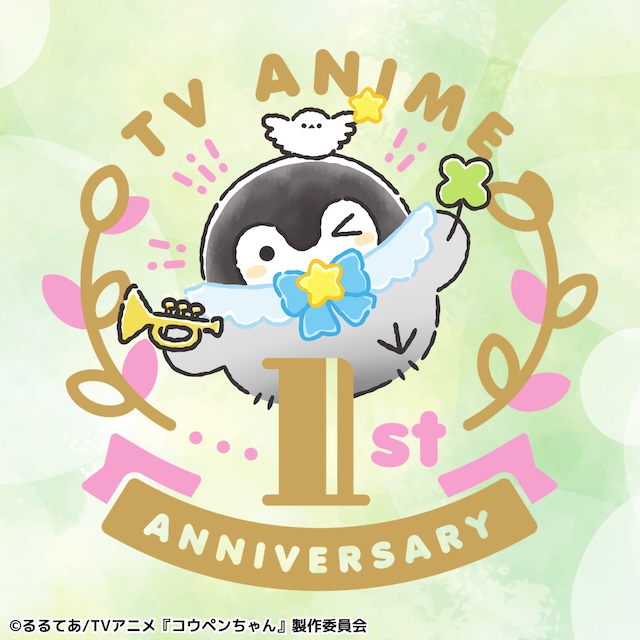 さらに、アニメ放送1周年記念ロゴが完成。おめかししたコウペンちゃんが、邪エナガさんと一緒にポーズを決めるデザインとなっており、ロゴはさまざまな記念展開に登場する。