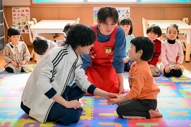 颯太は真を“まーくん”と呼び、慕っていたが、未来から別れたことを聞かされても一切泣かなかった。それどころか、未来を気遣うように、その頭を撫でて優しく抱きしめる。颯太がまた一つ成長したのは、将生(塩野瑛久)の力が大きい。よしずみ保育園のクリスマス会で、最終的にさるとカニが仲直りする『さるかに合戦』ならぬ『さるかにばなし』の劇を披露することになった子どもたち。将生は優太(小瀧望)に頼まれて劇の演出を担当することになり、主役のさるに選ばれた颯太を熱血指導する。