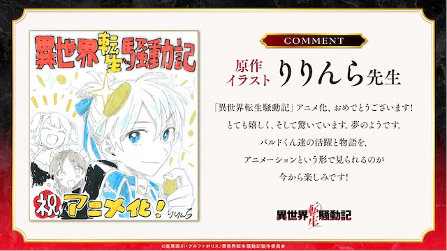 読者の皆様の応援やりりんら先生、ほのじ先生、制作会社様等たくさんの方々のご協力をいただき、このたび『異世界転生騒動記』アニメ化の運びとなりました。