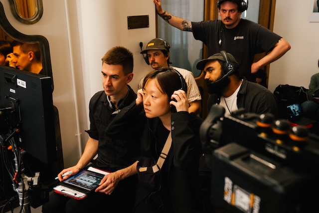 あわせて公開されたメイキング写真では、監督の前作『パスト ライブス/再会』のワンシーンを彷彿とさせるような、NYのお洒落なマンションの前でセリーヌ・ソン監督と話すエヴァンスの姿や、監督が真剣にモニターを見つめる姿が写し出されている。また、新場面写真には、ルーシーが勤める結婚相談所でのカップル成立パーティの様子が切り取られている。