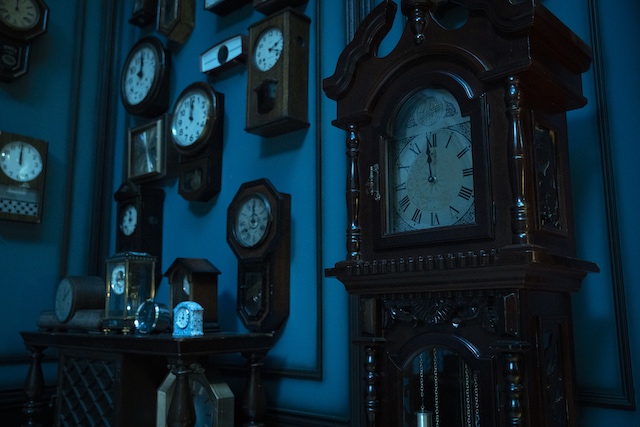 館内には様々な種類の時計のイミテーションが108個も飾られており、その全てが同じタイミングで時を刻む音を鳴らしている。その様子は不気味だがどこか神聖で、一つ一つの時計がまるで意識を持っているかのようにも見え、怪物の腹の中に閉じ込められているような恐ろしさがある。