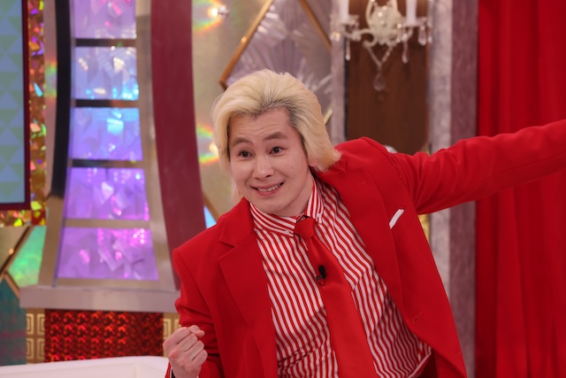 カズレーザーは、おなじみの金髪、真っ赤な衣装での登場となる。はたしてどんなシーンにどんな役で出演するのか。