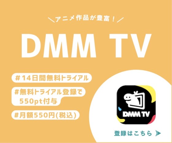 また、DMM TVでは14日間の無料トライアルを実施しているほか、アニメ作品を豊富に配信しています。
