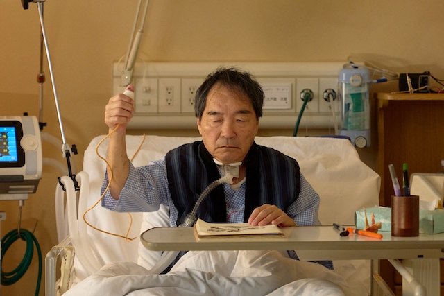 人工呼吸器の作動音だけが静かに鳴る、真っ暗な病室。やがて窓の外が明るくなり、医療用ワゴンを押しながらやってきた辺見がカーテンを開けると、柔らかな光が部屋全体を包み込む。