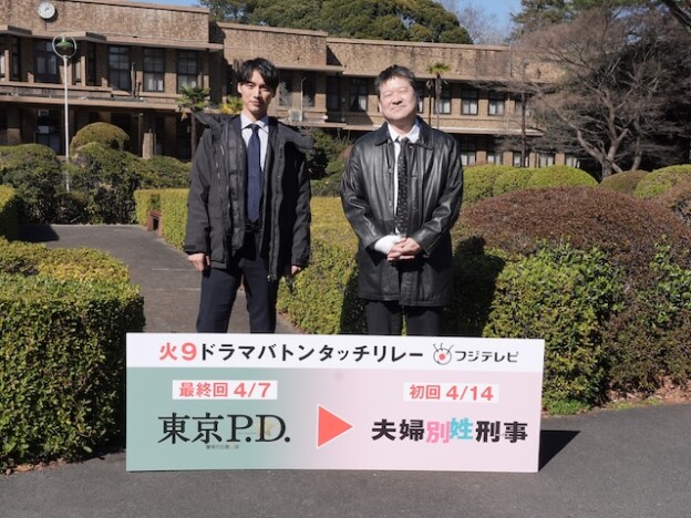 また、『東京P.D.』最終回の見どころを「緒形直人さん演じる安藤さんがどうなってしまうのかということと、僕が演じる今泉が広報として何を学んできてどう成長したのかが描かれています」と福士が明かすと、佐藤も「『東京P.D.』は社会派ドラマでシリアスな印象がございますが、『夫婦別姓刑事』は一転しましてコメディーになります。コメディーの皮をかぶった考察ミステリーでもあります。まだ撮影してそんなに時間はたっていないのですが、現場は楽しく撮影しております。ぜひご覧いただきたいなと思います」と初回に向けて意気込み、福士からの火9ドラマ主演のバトンをしっかり受け取った。