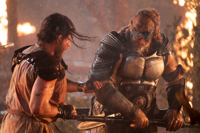 あわせて公開された場面写真には、シンボルである銀のビキニアーマーをまとった赤髪の女戦士、レッド・ソニア(マチルダ・ルッツ)が、ダムナティと呼ばれる囚われの戦士たちとともに激闘に身を投じる姿が写し出されている。さらに、ソニアが暮らす森の自然や動物を容赦なく破壊していく暴君、ドレイガン皇帝(ロバート・シーアン)が本を抱え、不敵な笑みを浮かべる意味深な瞬間も切り取られている。