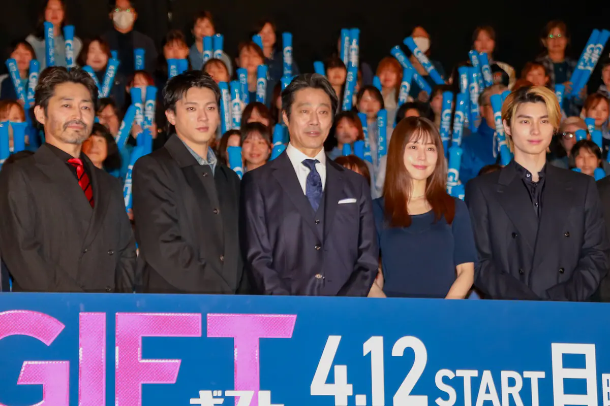 4月12日スタートの日曜劇場『GIFT』(TBS系)第1話プレミア試写&スペシャル舞台挨拶が、4月4日に都内で行われ、主演の堤真一をはじめ、山田裕貴、有村架純、本田響矢、細田善彦、越山敬達、八村倫太郎、やす、水間ロン、冨手麻妙、ノボせもんなべ、安田顕が登壇。撮影の裏側と第1話の見どころを語った。