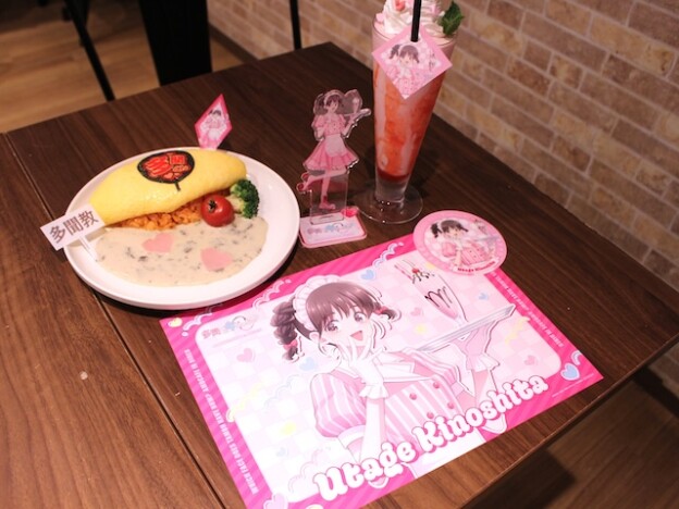 カフェのテーマは「アメリカンダイナー」。作品のヒロインである木下うたげとF/ACEのメンバーたちが、ポップでレトロなダイナーの制服に身を包んでお出迎えしてくれるという、ファンにとってはたまらない空間となっている。