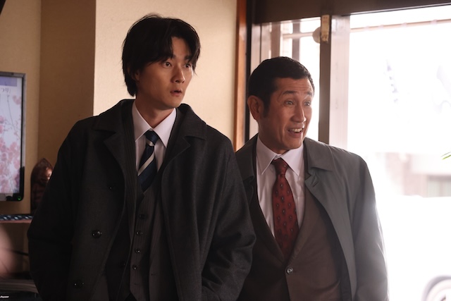 だが、白杖を手にした店主・頼子(久本雅美)がいる呉服店「佐藤商会」に入ったあたりから、空気は少しずつ変わり始める。「一見さんはお断り」と言い放つ頼子の態度には、ただ気難しいだけでは片づけられないものがあった。さらに、骨董品店では空き巣被害の話を聞かされる。しかも盗まれたのは金品ではなく、なぜか盾。うどん屋で偶然出会った田村(栁俊太郎)と小湊(渋川清彦)が強盗殺人事件を追っていることもわかり、カズト探しの最中に、別の不穏な事件の気配が入り込んでくる。
