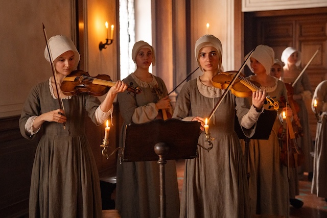あわせて公開された場面写真では、ヴァイオリンを手に凛と立つチェチリアの姿や、彼女を見つめるヴィヴァルディの複雑なまなざし、そしてピエタ院での演奏シーンなどが収められている。