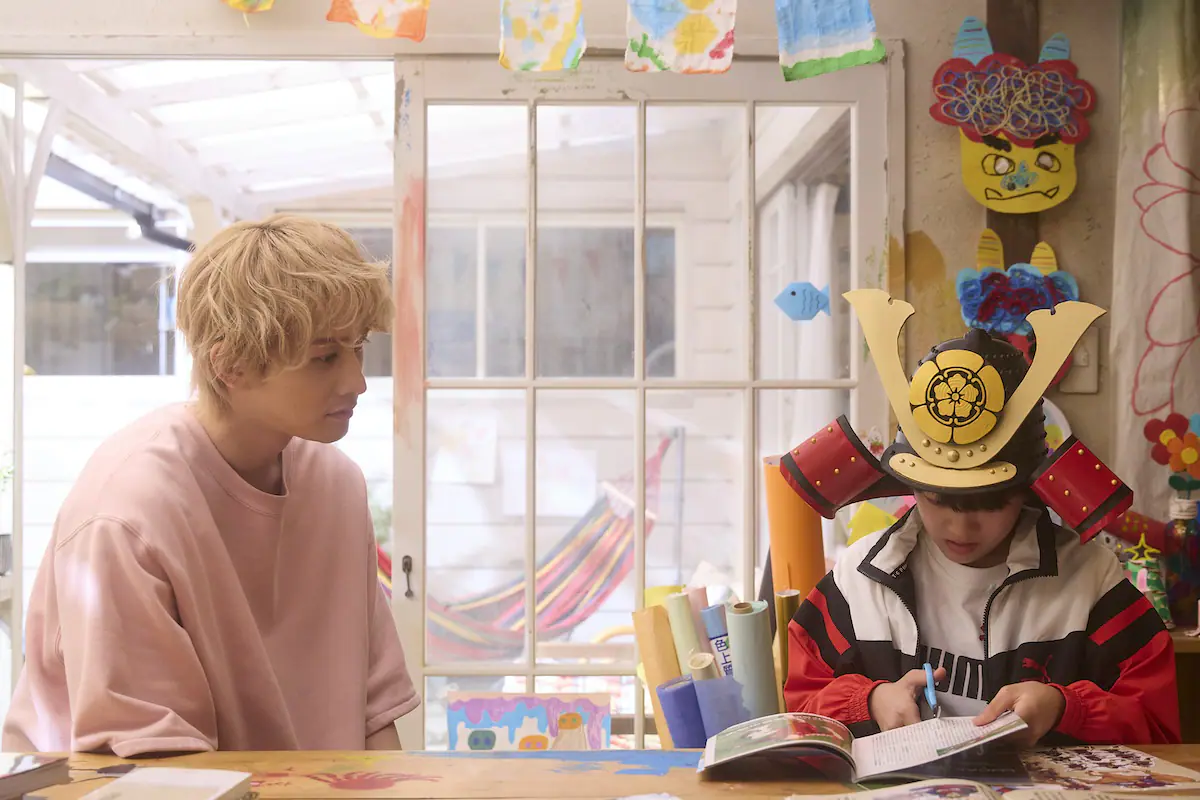 タツキが子どもたちに「学校は行かなくてもいい」「逃げてもいい」と人によっては甘すぎると感じる言葉をかけるのは、その心を守るためだ。それとは真逆のメッセージばかり溢れる社会で、子どもたちは逃げ場を失い、追い詰められた末に自ら命を絶ってしまうこともある。そのことを誰よりも実感しているのはタツキではないだろうか。前回のラストで元妻・優(比嘉愛未)から、息子の蒼空(山岸想)が飛び降りたという連絡を受けたタツキ。蒼空は命に別状はなかったが、大怪我を負い、病院に駆けつけたタツキは優に追い返される。回想シーンでは、黒髪でスーツを着たタツキが部屋に閉じこもっている蒼空を無理やり連れ出そうとする姿も。見た目はもちろんのこと、隣に寄り添って子どもの言葉を待つ今のタツキからは想像もできない荒療治に衝撃を受けた。そんなタツキがお面の裏に書いたのは、泣いている自分。もしかしたら、いつも太陽のような笑顔を浮かべているタツキの心の中には雨が降っているのかもしれない。