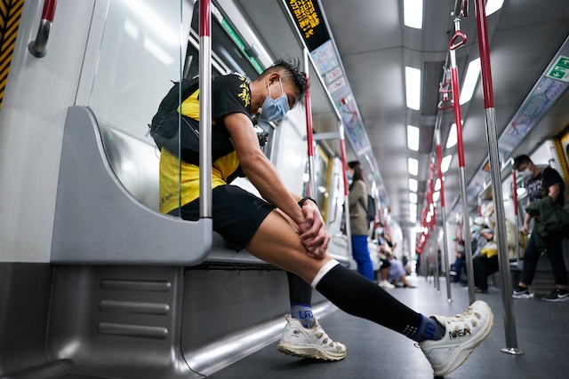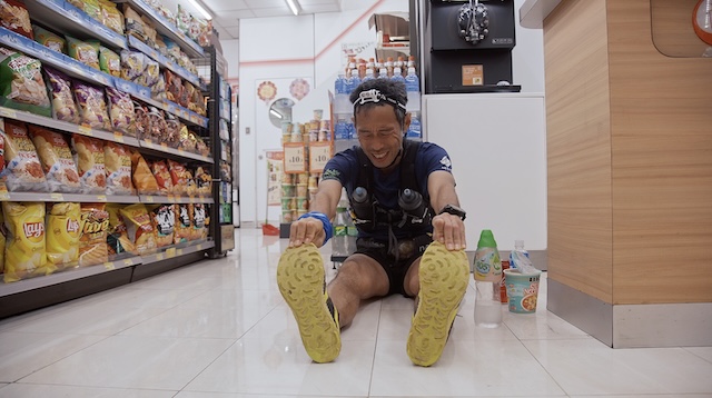 あわせて公開された場面写真には、香港の高層ビル群を見下ろす大自然の中を走る姿や、コンビニの床に座り込んでストレッチをする様子、地下鉄の座席でうなだれる姿などが切り取られている。