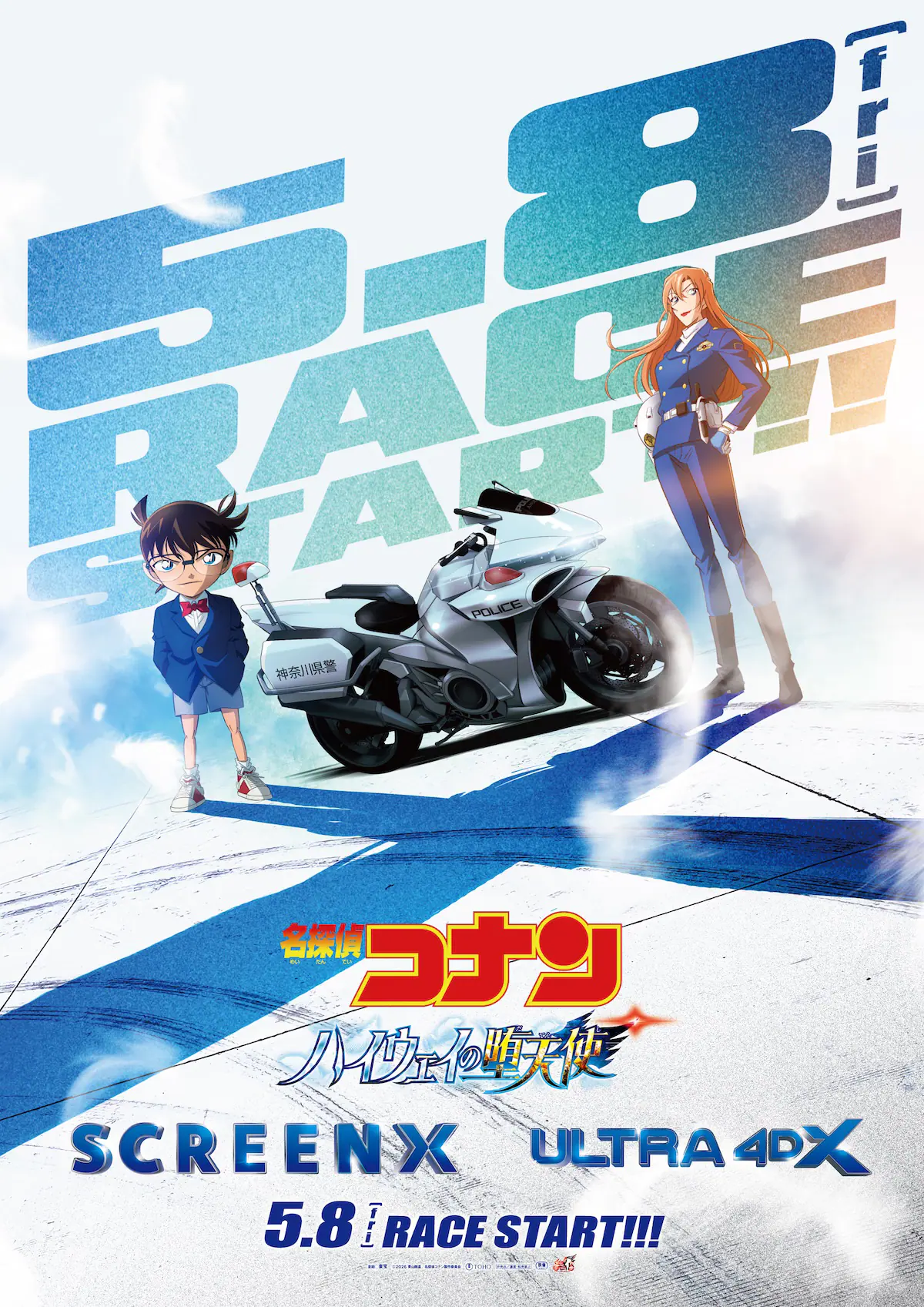 加えて、5月8日よりSCREENX、ULTRA 4DXでの上映も決定した。劇場版『名探偵コナン』としては前作で初めて実施された両形式だが、今年は全てのアクションシーンが3面スクリーンに広がり、スケールアップしている。萩原千速の白バイと謎の黒いバイクによる激しいバイクチェイスシーンや、横浜中を巻き込む大爆発、クライマックスで繰り広げられるベイブリッジでのダイナミックなアクションなどを没入感と臨場感で体験できる。あわせてエクスクルーシブビジュアルも公開された。