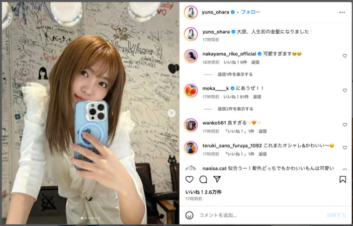 LE SSERAFIMのSAKURAが2月11日、自身のInstagramを更新。髪色を抑えたミディアムレイヤーカットの新ヘアス…