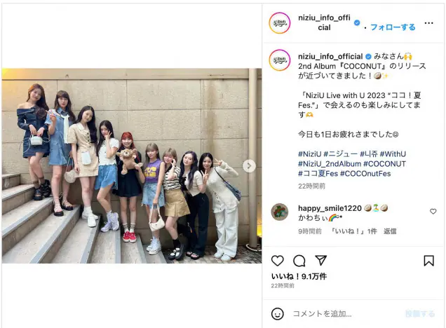 NiziU、アルバム発売に向けて集合ショット公開 MAYAは大胆に美麗デコルテ披露