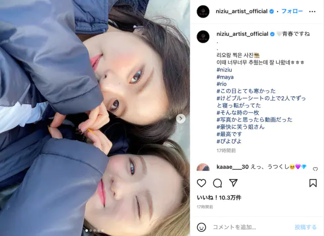 NiziUのアーティスト公式Instagramにて、RIOとMAYAによる通称“リオマヤ”のツーショットがアップされ、WithU…