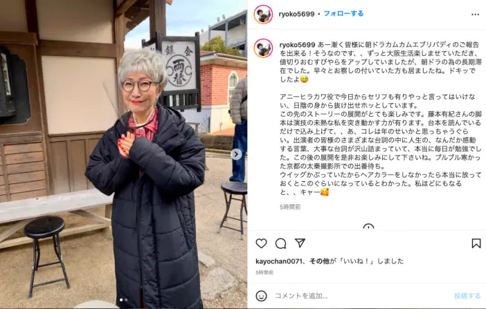 森山良子、『カムカムエヴリバディ』アニー・ヒラカワ役で本格出演 出番待ち中のオフショット公開