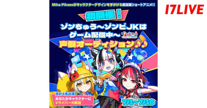 17LIVEは、YouTubeで話題のショートアニメ「ゾンちゅう〜ゾンビJKはゲーム配信中〜」のキャラクター声優を選出するオーデ…