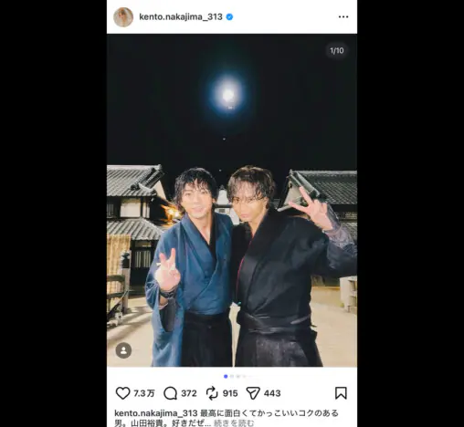 中島健人&山田裕貴、仲睦まじい 『ちるらん 新撰組鎮魂歌』オフショ 振り切った変顔に「双子の様な二人」