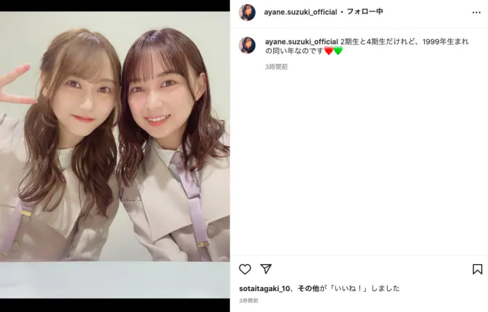 乃木坂46 鈴木絢音が、自身のInstagramに弓木奈於とのツーショットをアップしている。 鈴木と弓木は、2期生と4期生…