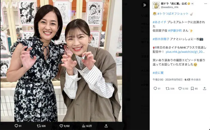 NHK連続テレビ小説『虎に翼』のヒロイン・寅子を演じている伊藤沙莉が、9月6日に放送された『あさイチ』(NHK総合)の「プレミア…