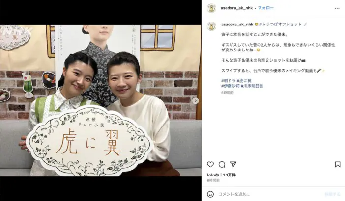 NHK連続テレビ小説『虎に翼』の公式Instagramが9月11日に更新され、主人公の寅子(伊藤沙莉)と娘・優未(川床明日香)の…
