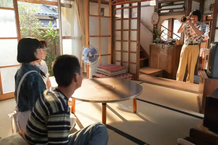 ひなた(川栄李奈)と弟の桃太郎(青木柚)が大げんかをしていると、錠一郎(オダギリジョー)がトランペットを手にしてやってくる。錠一…