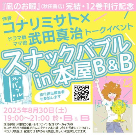 『凪のお暇』(秋田書店)完結・第12巻刊行を記念したイベント「コナリミサト×武田真治 スナックバブル in B&B」のチ…