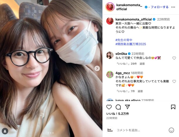 百田夏菜子(ももいろクローバーZ)が、芳根京子と一緒に東京から大阪を移動したことを自身のInstagramに報告している。 …